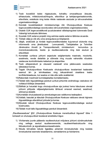16)Täidab muid talle õigusaktidega pandud ülesandeid.