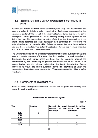 Pursuant to Directive 2016/798 the safety investigation body must decide within two months whether to initiate a safety investigation. Preliminary assessment of the occurrence starts with the receipt of the initial notification. During this time, the safety investigation officer processed all cases affecting railway safety reported to him during the year. The proceedings consisted of clarifying the data contained in the written notice following the initial notification and completed by processing the materials collected by the undertaking. Where necessary, the supervisory authority has also been consulted. The Safety Investigation Bureau has received materials about suicide cases, which have been noted.