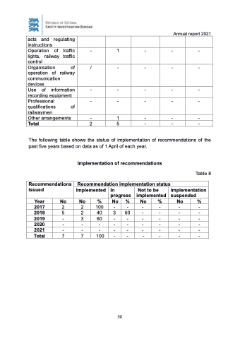 The following table shows the status of implementation of recommendations of the past five years based on data as of 1 April of each year.