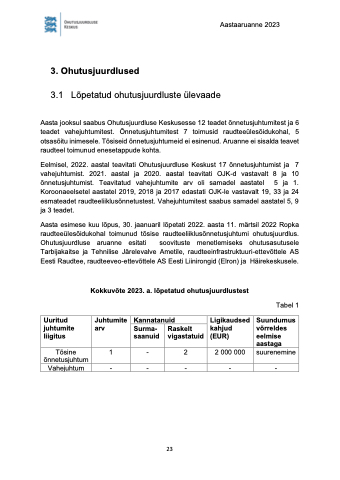 Page 23 - Raudteeliiklusõnnetuste 2023. a ohutusjuurdluste aastaaruanne