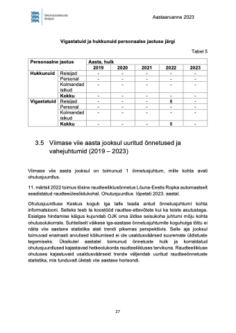 Page 27 - Raudteeliiklusõnnetuste 2023. a ohutusjuurdluste aastaaruanne