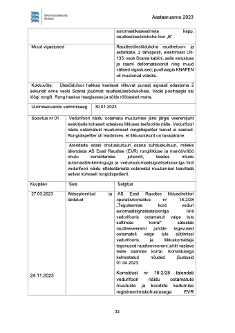 Page 33 - Raudteeliiklusõnnetuste 2023. a ohutusjuurdluste aastaaruanne