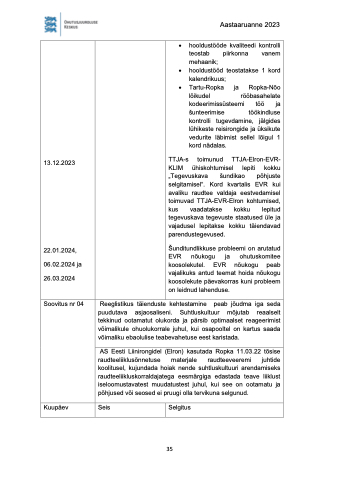 Page 35 - Raudteeliiklusõnnetuste 2023. a ohutusjuurdluste aastaaruanne